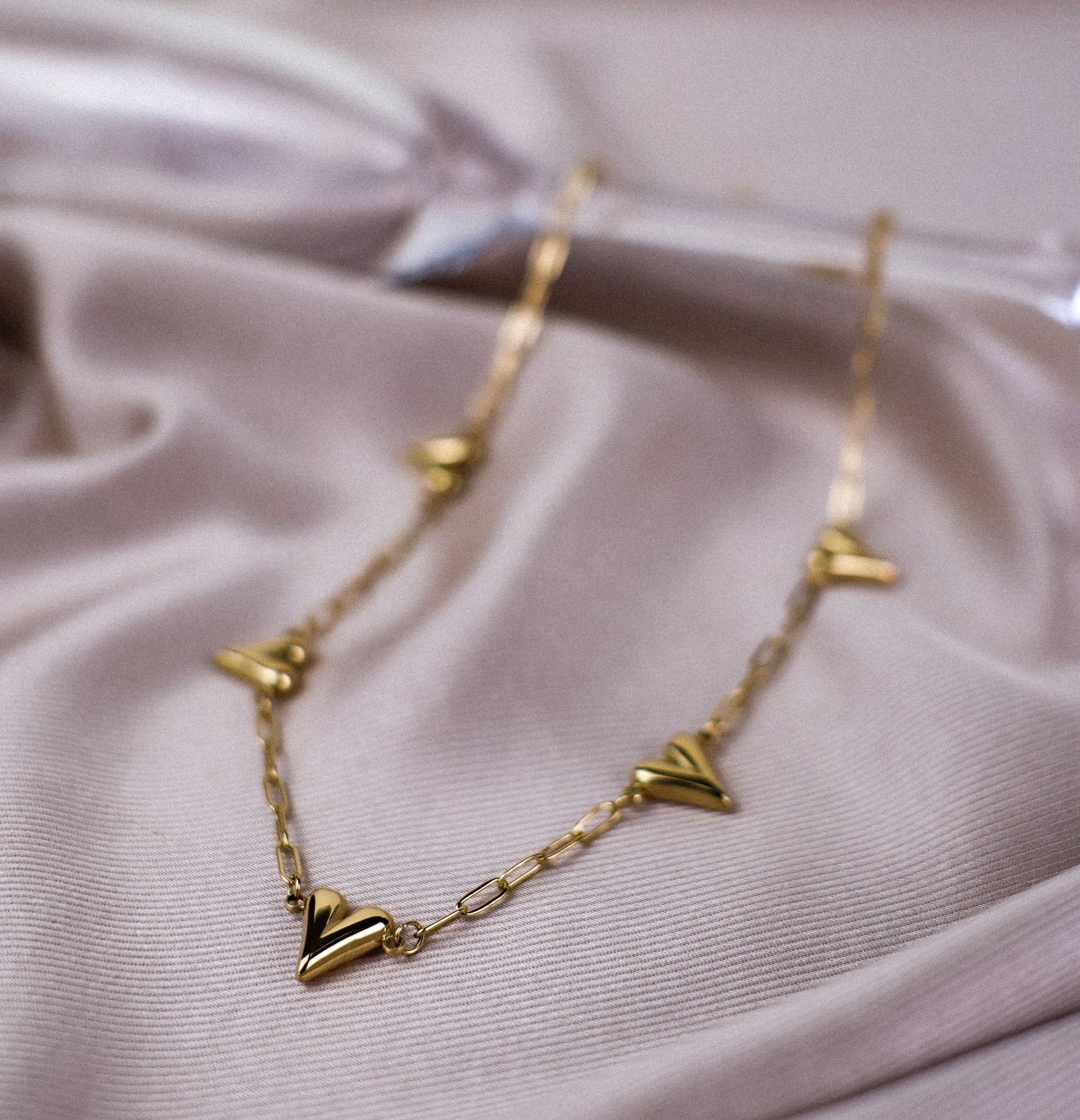 ✨ Laat liefde en kracht samenkomen met de Golden Hearts Chain Necklace – een ketting die straalt bij elke gelegenheid.